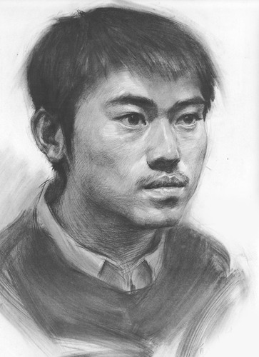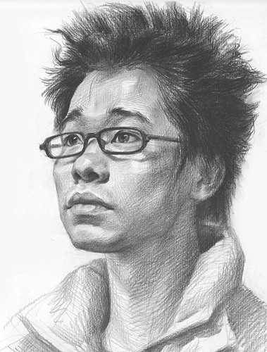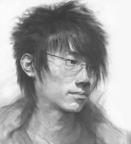 男青年三分之一素描头像
