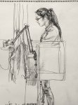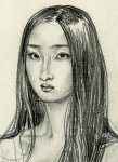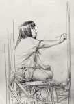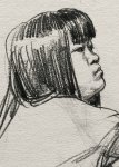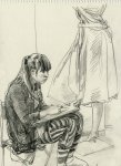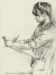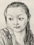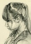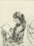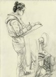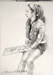 画室女学生 头像 学生做模特 头发辫子的画法 手的画法 眼镜的画法 正在画速写 古典美 文静的女孩