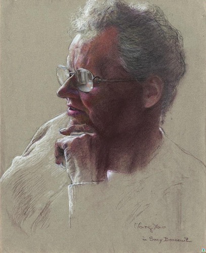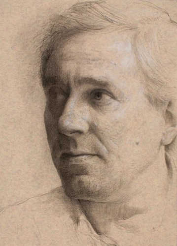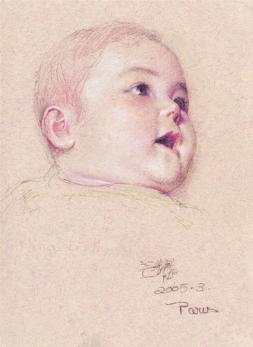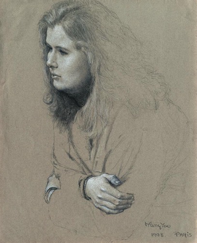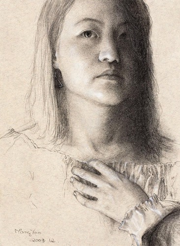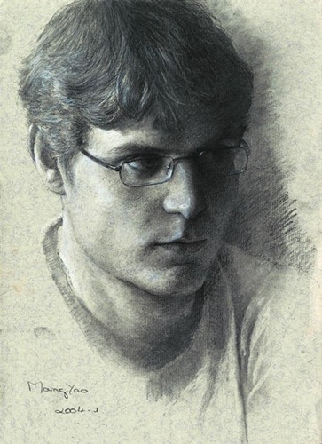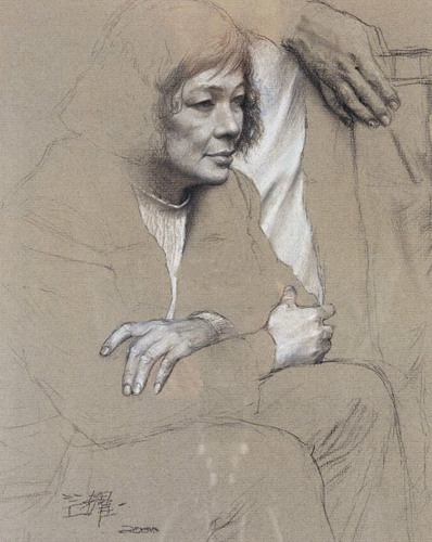 徐芒耀的素描作品总是给人一种真实自然的感觉。徐芒耀喜欢在彩色素描纸上画画,所以背景色作为中间色调,暗色部分较重,亮色部分较亮,画面丰富厚重。